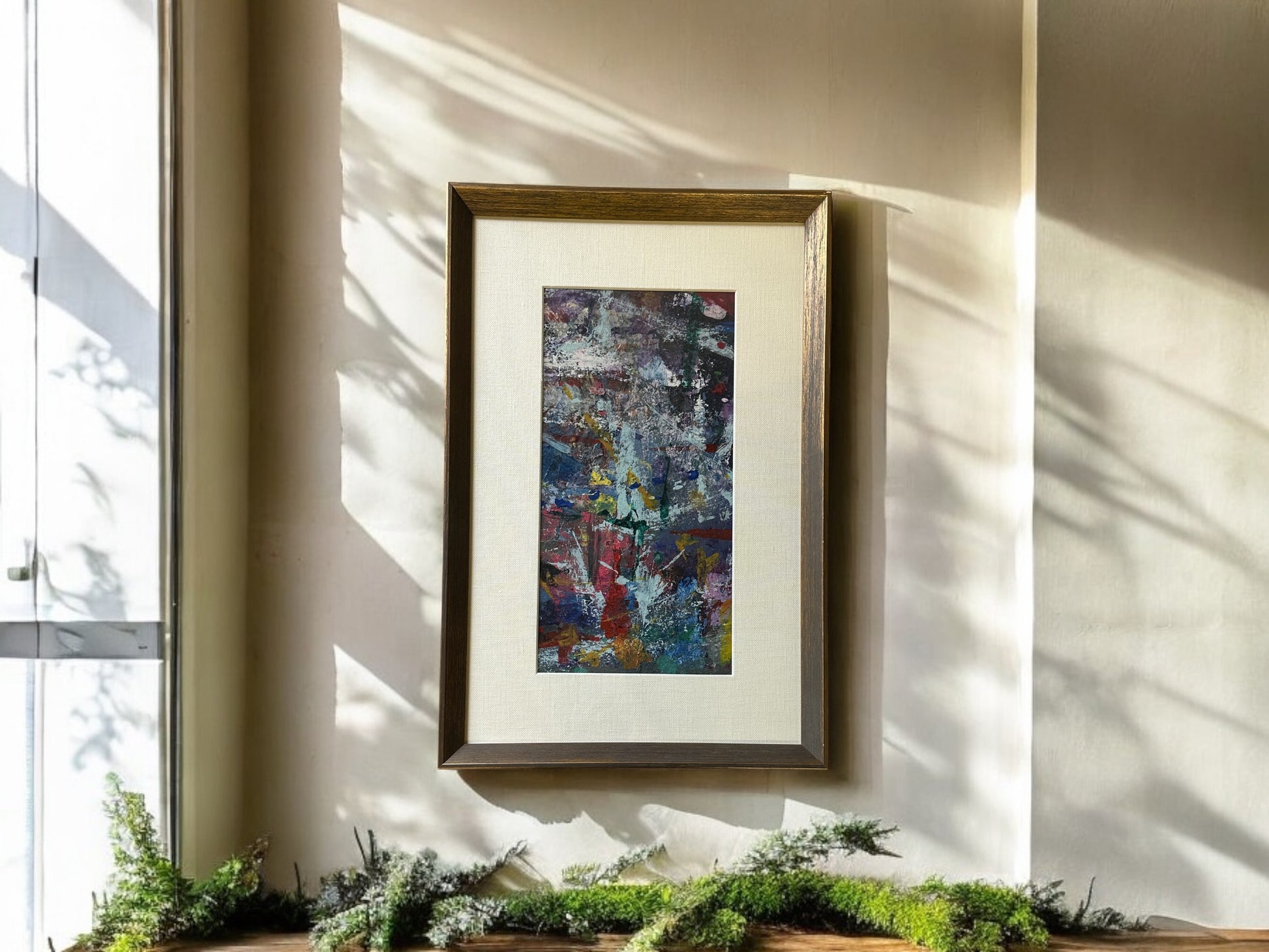 Adorn your walls with the striking Aged Brilliance artwork by Daniel Buckler. This unique piece showcases a mix of media on paper, elegantly displayed in a custom linen mat and frame measuring 13 x 20 inches. Each piece is individually numbered, making it a truly one-of-a-kind addition to any art collection.