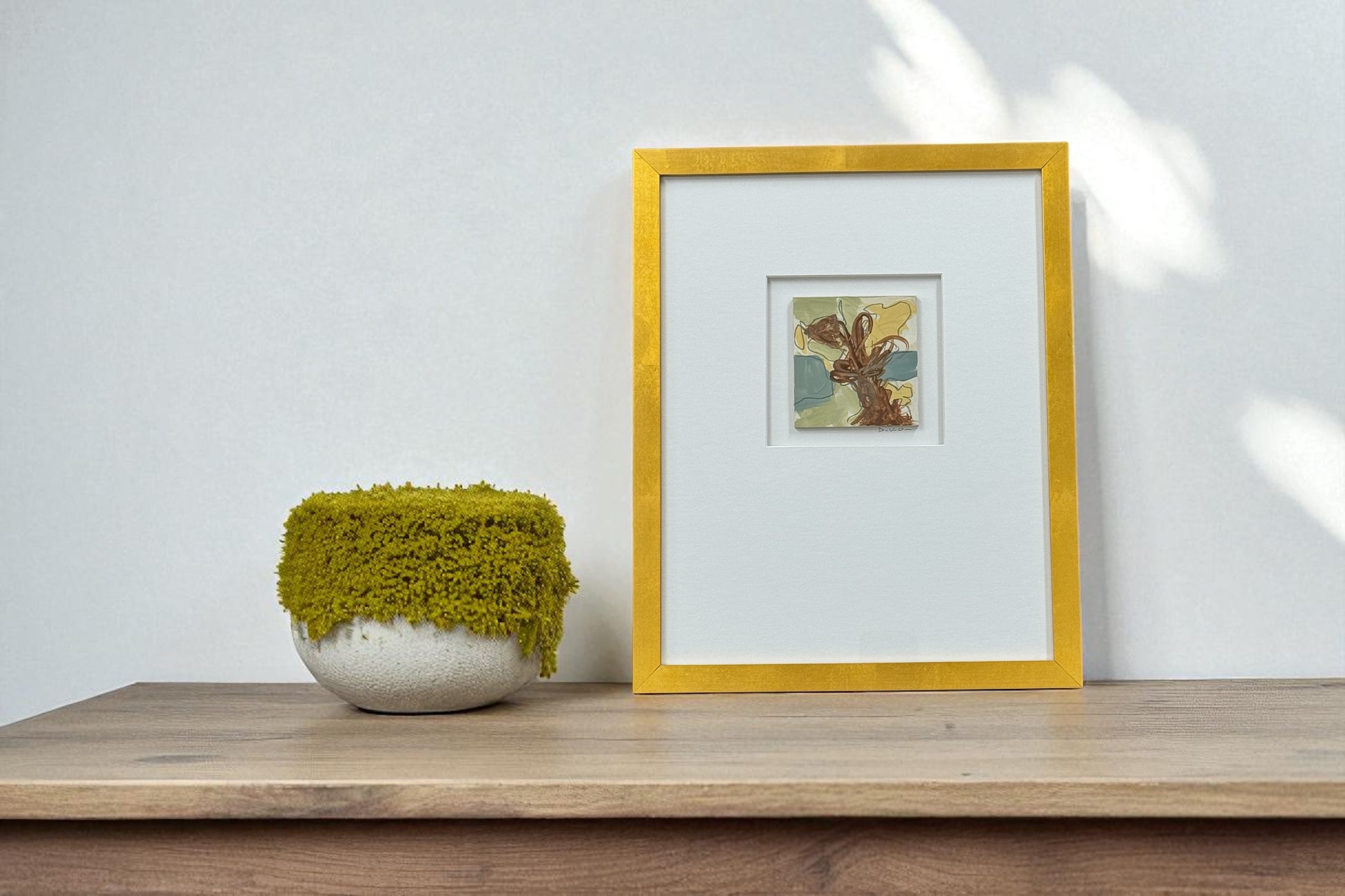 Featuring the exquisite Brume series, by DVO - #1460 is a masterpiece of acrylic on panel artwork. Float mounted on map board and encased in a luxurious gold leaf frame, this 12 x 15" piece is a must-have for any art lover. Elevate your space with this captivating painting.