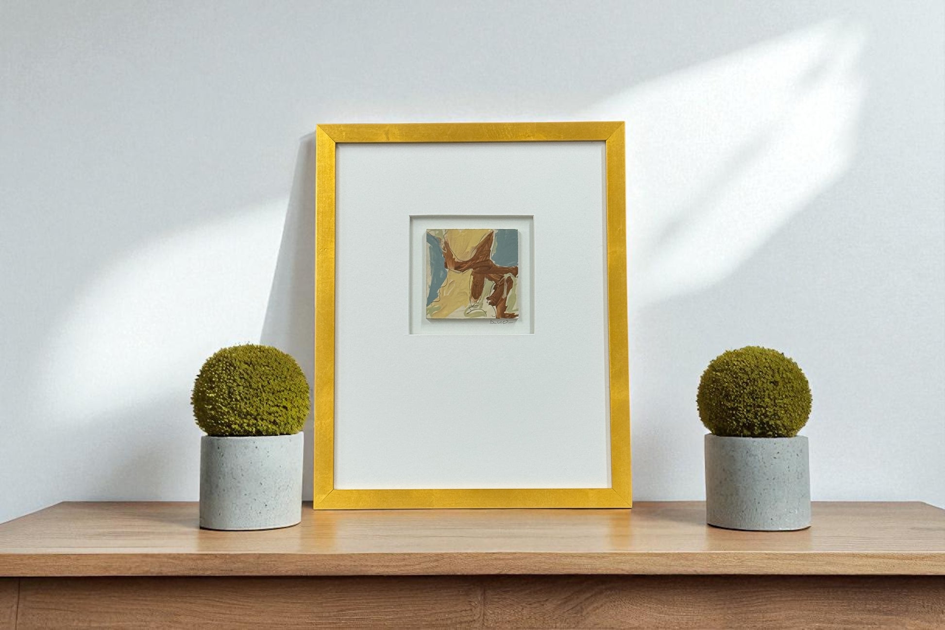 Featuring the exquisite Brume series, by DVO - #1461 is a masterpiece of acrylic on panel artwork. Float mounted on map board and encased in a luxurious gold leaf frame, this 12 x 15" piece is a must-have for any art lover. Elevate your space with this captivating painting.
