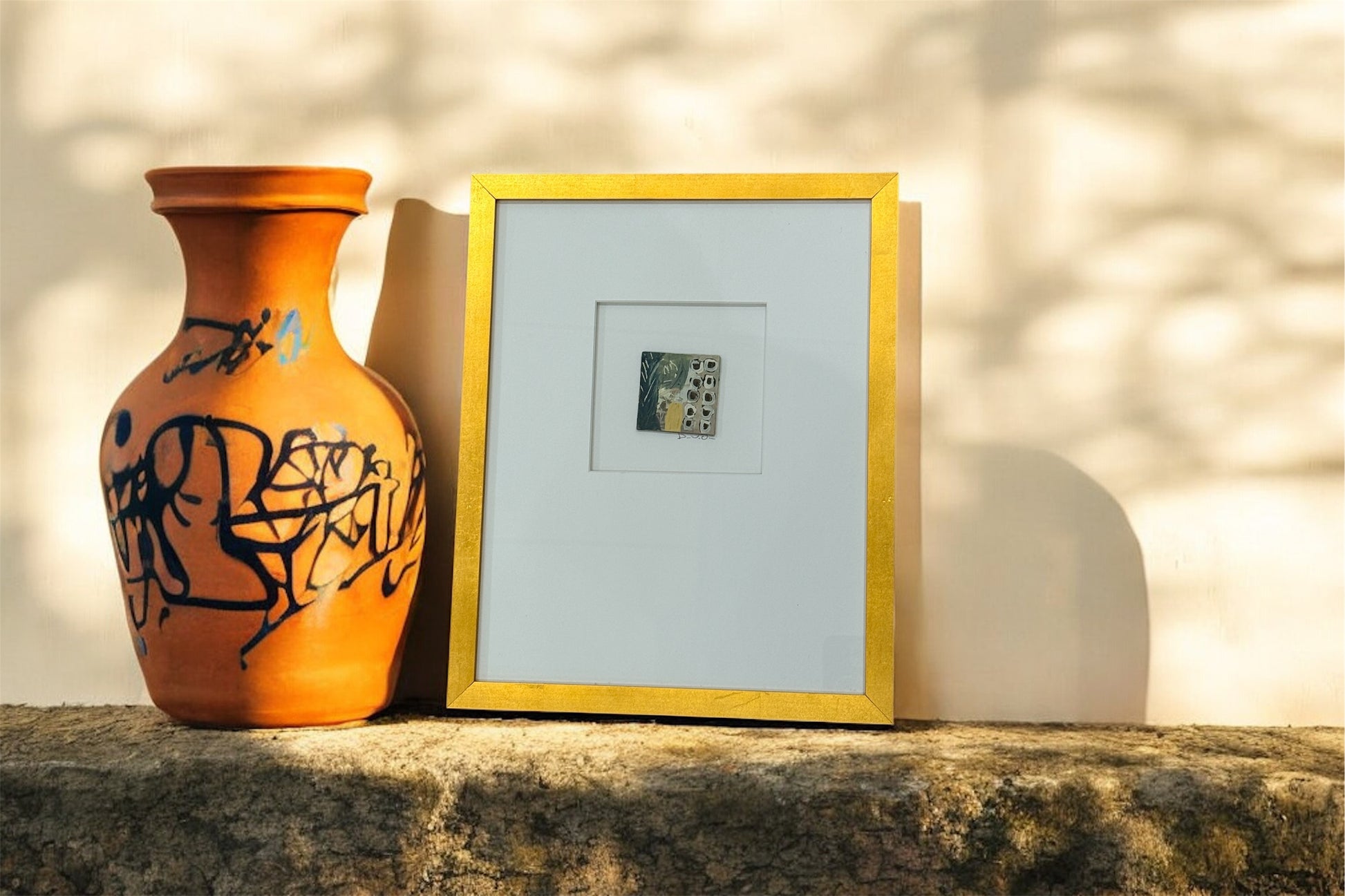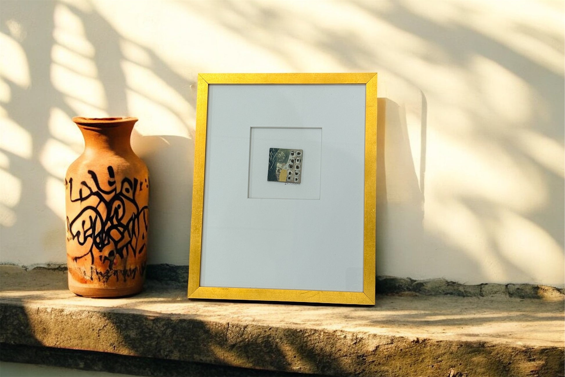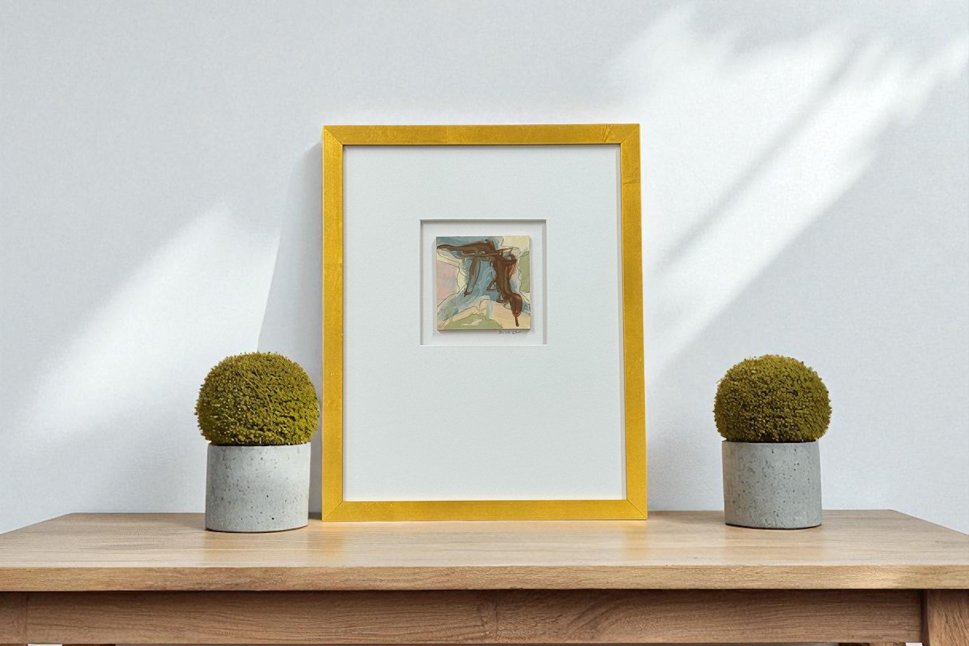 Featuring the exquisite Brume series, by DVO - #1462 is a masterpiece of acrylic on panel artwork. Float mounted on map board and encased in a luxurious gold leaf frame, this 12 x 15" piece is a must-have for any art lover. Elevate your space with this captivating painting.