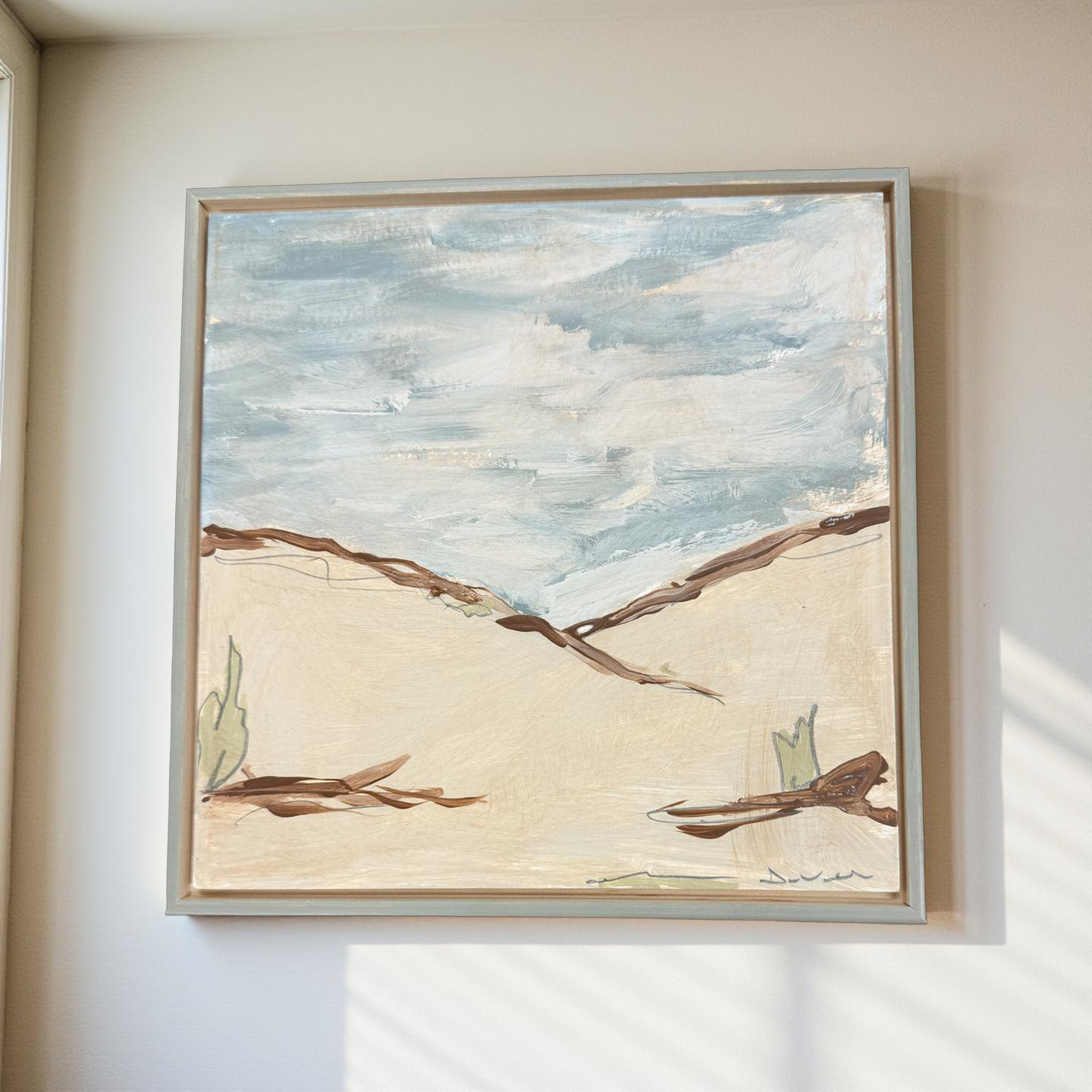 Canyon Echos by Daniel Van Osten is a meticulously crafted mixed media artwork, measuring 8 by 8 inches, elegantly set in a custom wood frame. This piece, art number 2021, showcases refined technique on panel, making it a distinguished addition for collectors seeking a unique expression of landscape-inspired abstraction.