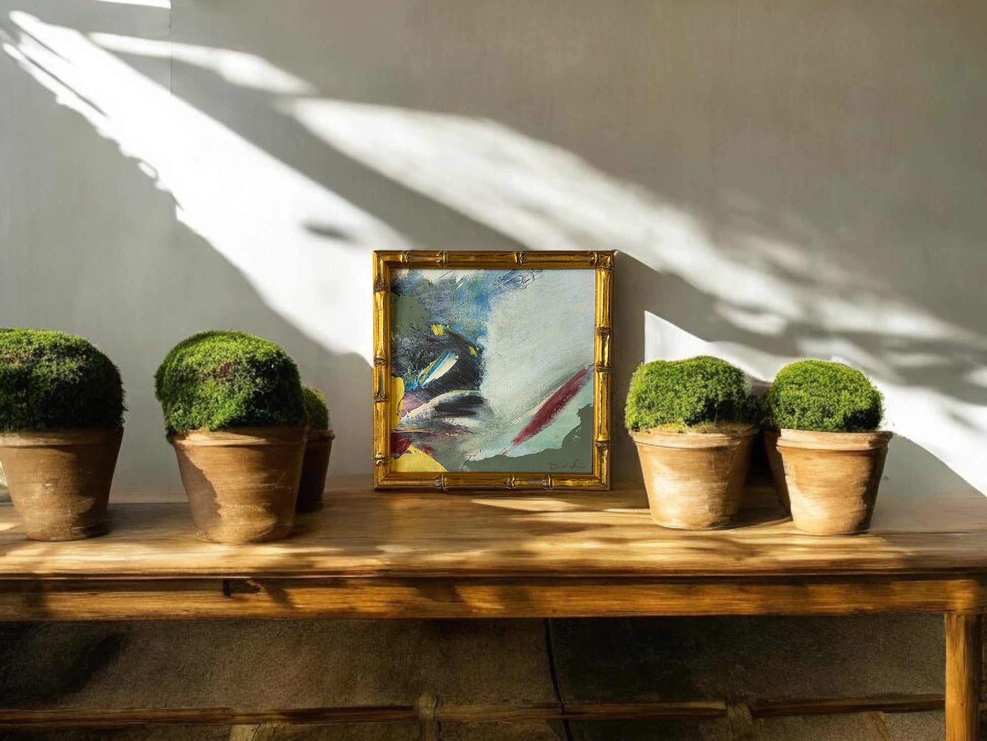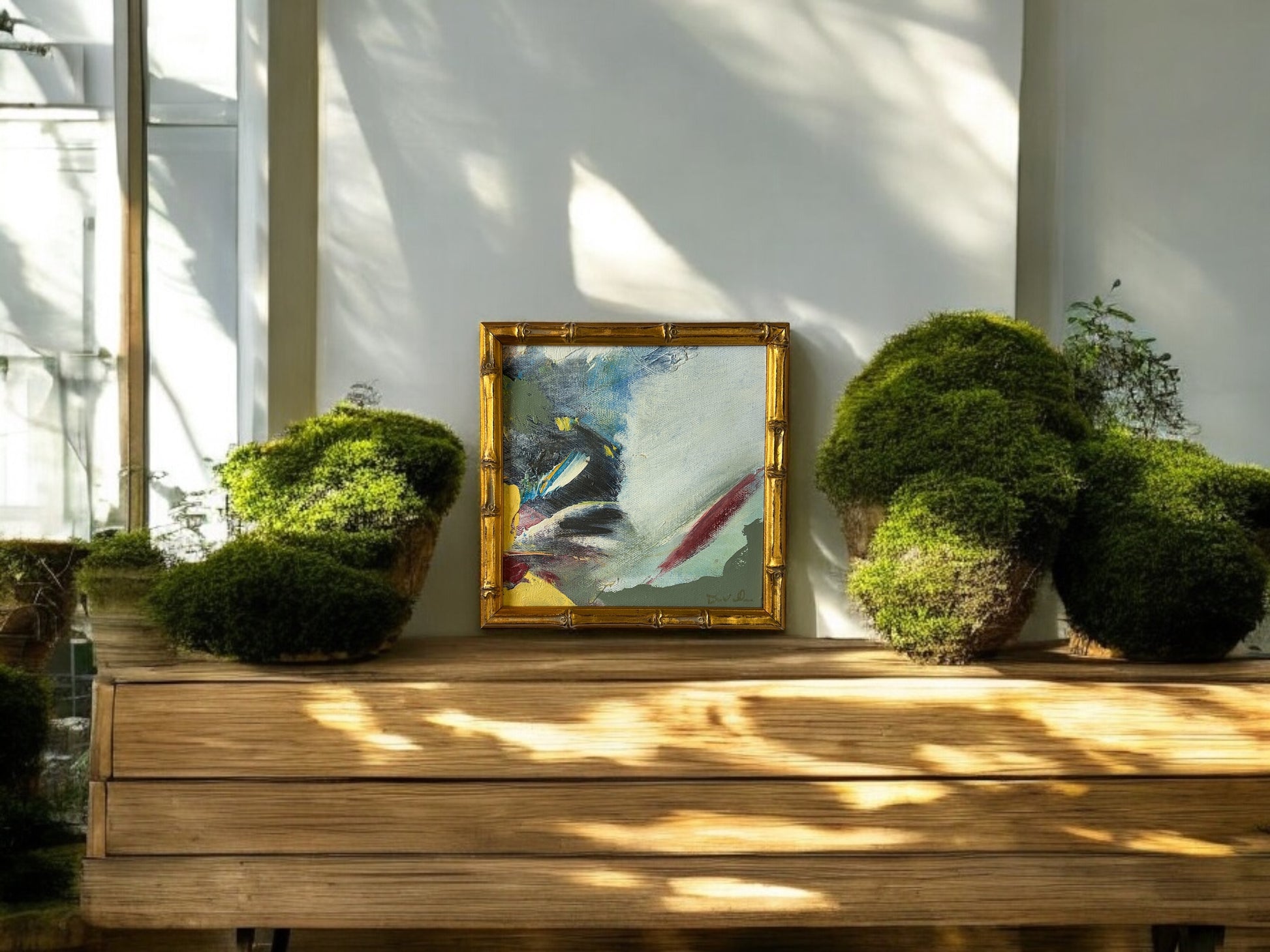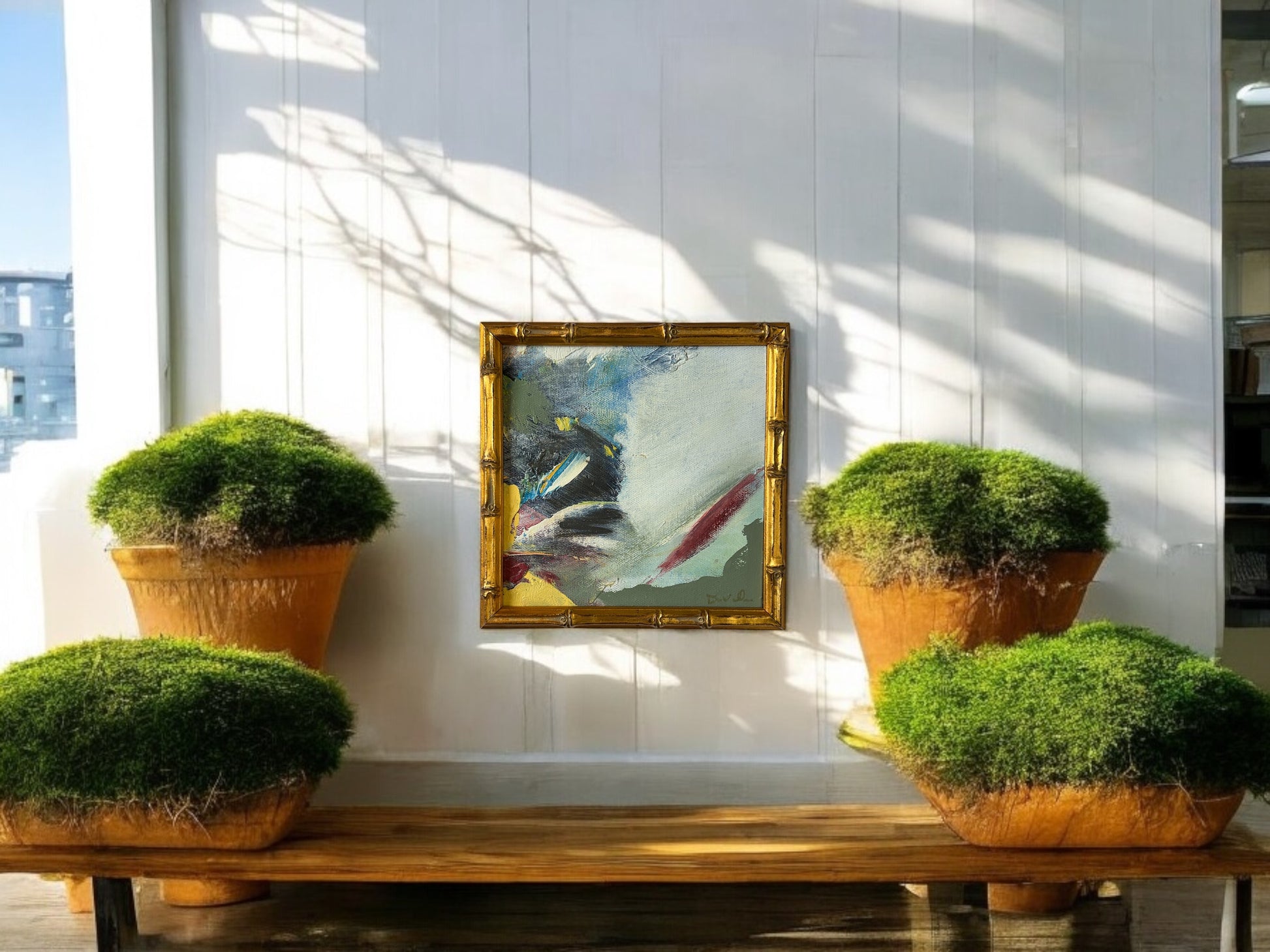 Expertly crafted and uniquely designed by renowned artist Daniel Van Osten, this mixed media piece is a stunning addition to any space. Measuring 9 x 9 inches and presented in a custom frame, it can be easily displayed on a wall or placed on a surface. With its vibrant colors and expert use of mixed media techniques, this piece is sure to make a statement and add a touch of elegance to any room.