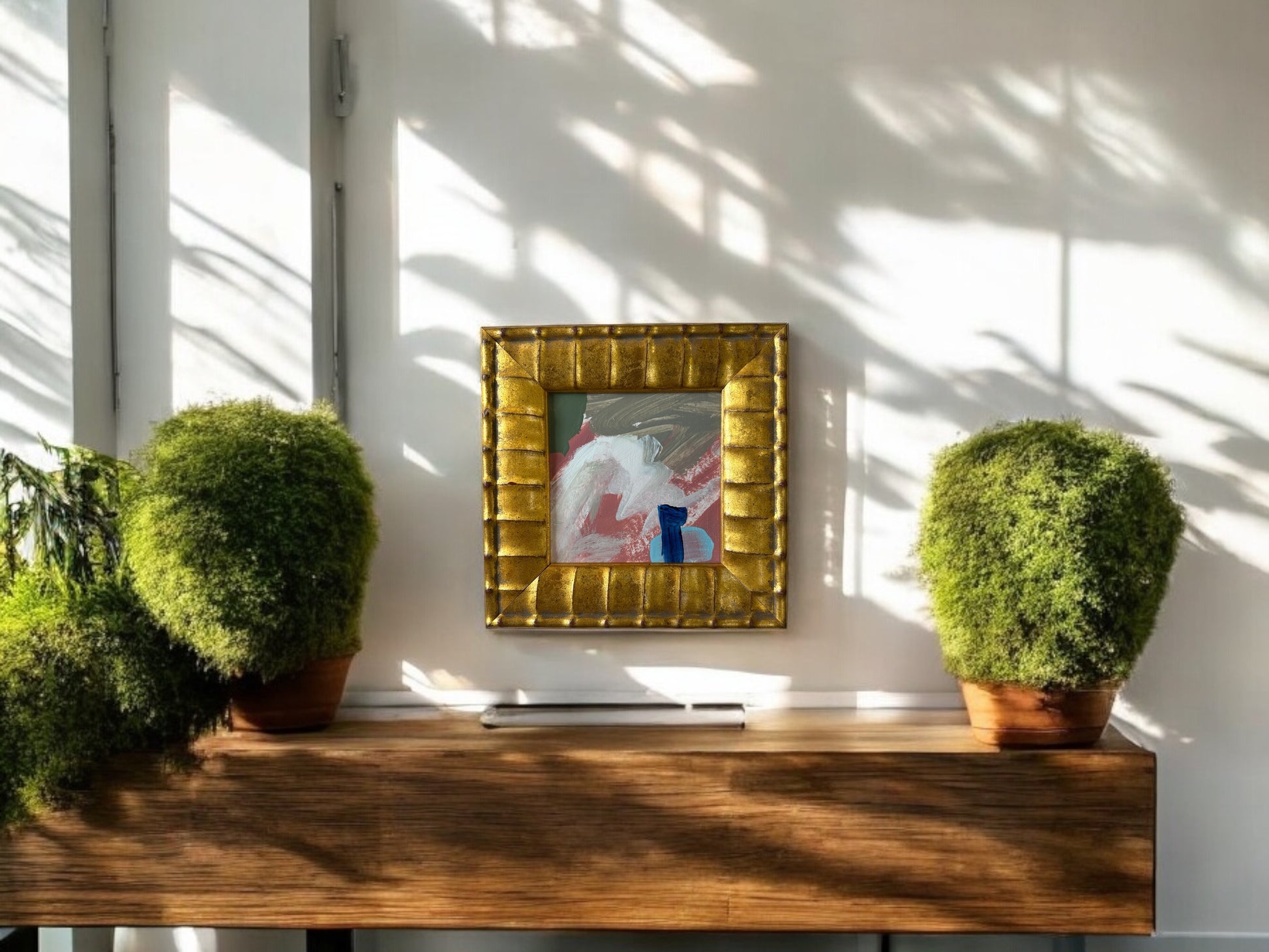 Expertly crafted and uniquely designed by renowned artist Daniel Van Osten, this mixed media piece is a stunning addition to any space. Measuring 8x8 inches and presented in a custom frame, it can be easily displayed on a wall or placed on a surface. With its vibrant colors and expert use of mixed media techniques, this piece is sure to make a statement and add a touch of elegance to any room.