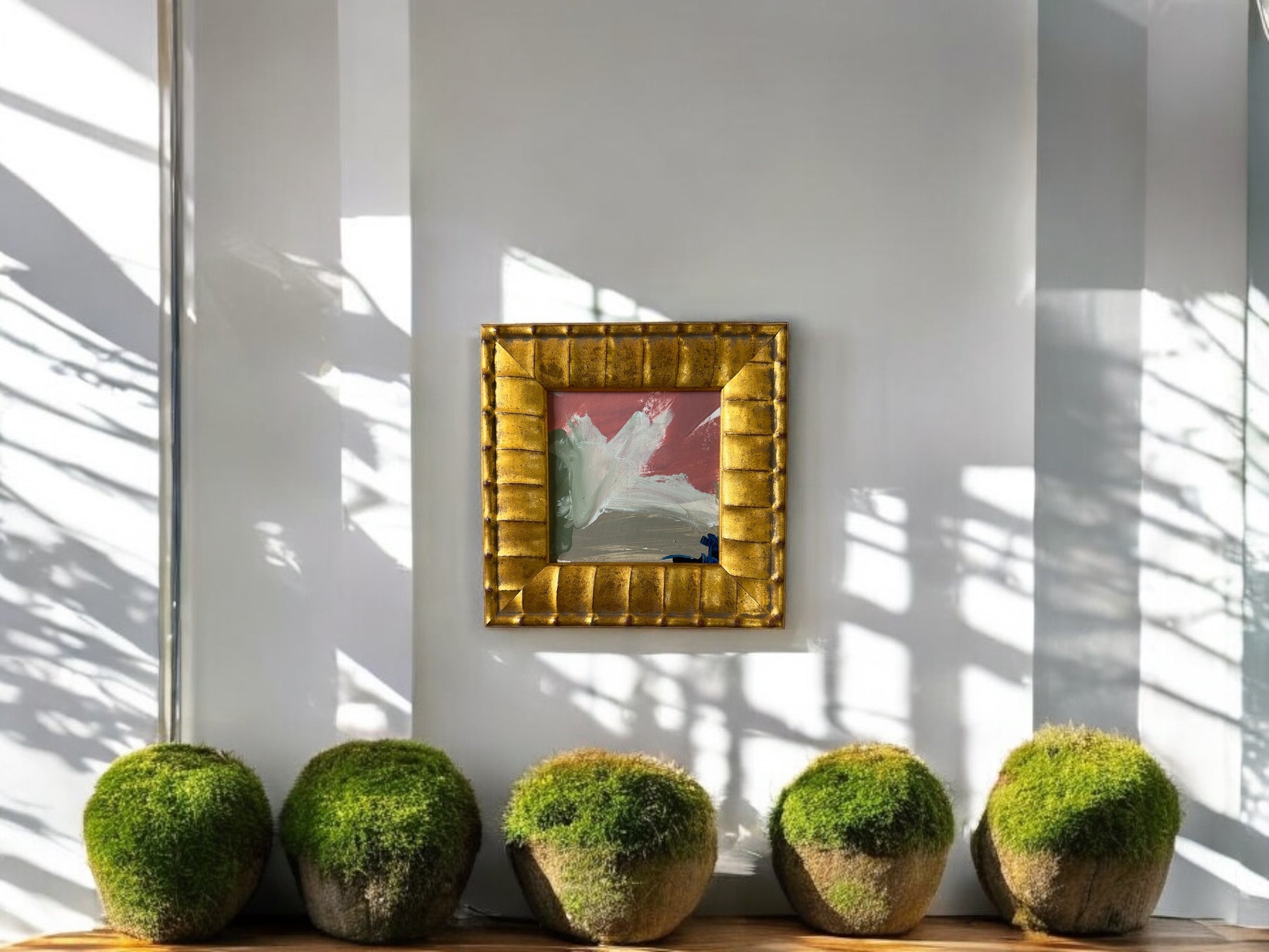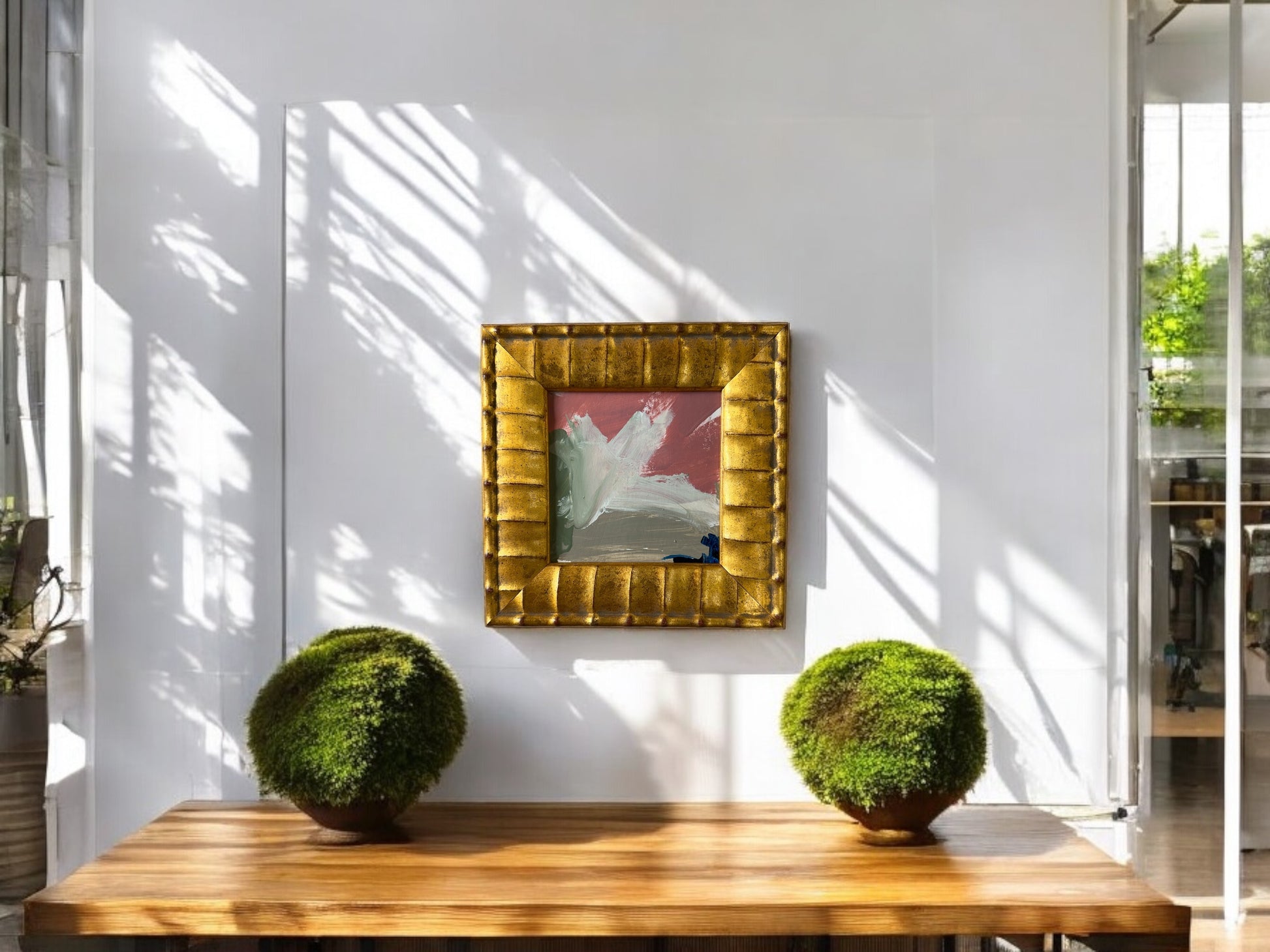 Expertly crafted and uniquely designed by renowned artist Daniel Van Osten, this mixed media piece is a stunning addition to any space. Measuring 8x8 inches and presented in a custom frame, it can be easily displayed on a wall or placed on a surface. With its vibrant colors and expert use of mixed media techniques, this piece is sure to make a statement and add a touch of elegance to any room.