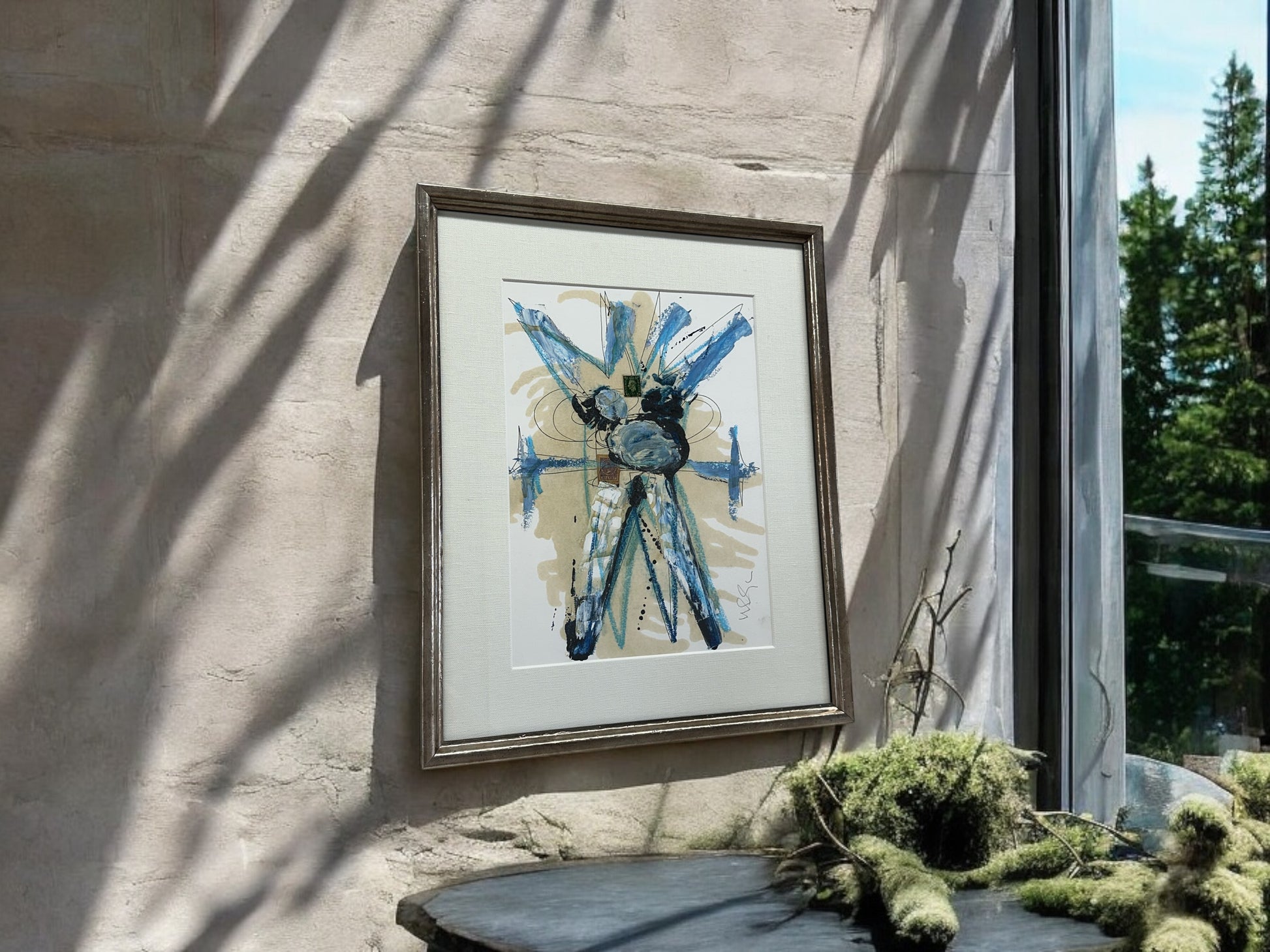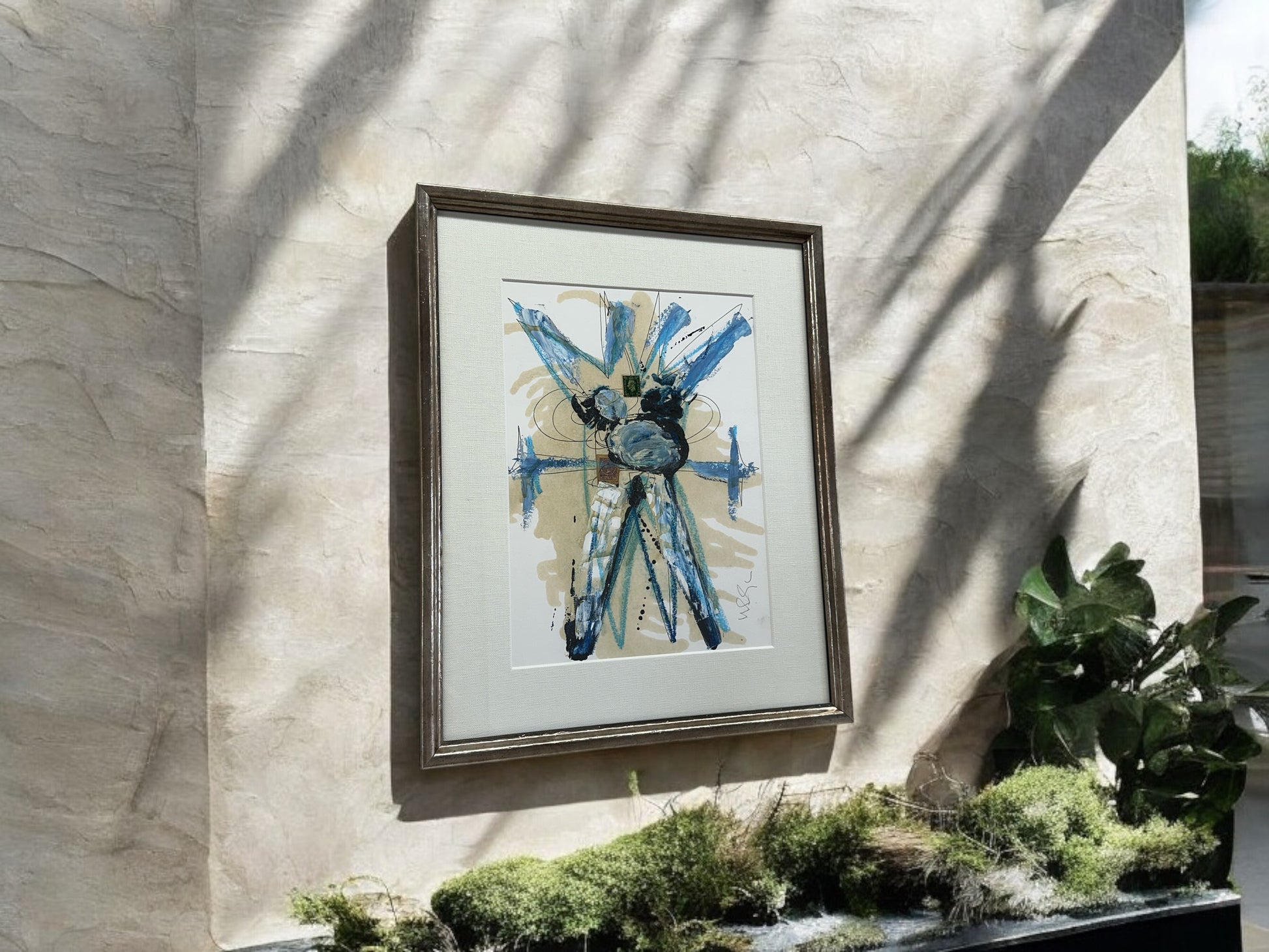 Expertly crafted and uniquely designed, the Monsters Series by Wayne Cunningham is a stunning collage on paper. This piece, numbered 1256, comes in a custom frame with a linen mat, measuring 17 x 21 inches. Add a touch of creativity and sophistication to any room with this one-of-a-kind artwork.