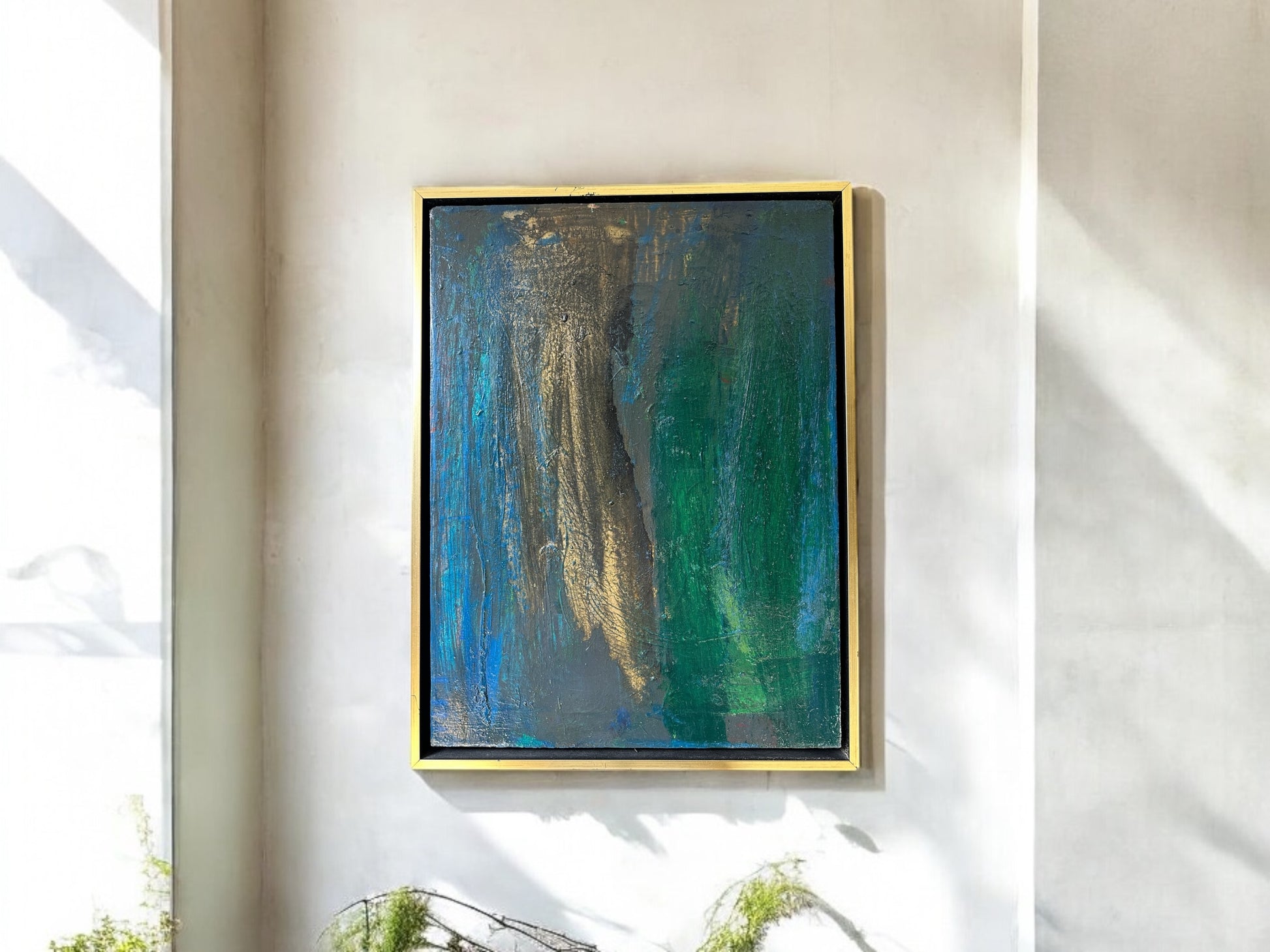 Experience the calming beauty of Serene Echos, a stunning oil and mixed media on canvas art piece by Daniel Buckler. Number 1204 is elegantly presented in a custom floater frame, measuring 19 1/2 x 25 1/2 inches. Bring a sense of tranquility and inspiration to any space with this unique and expertly crafted artwork.
