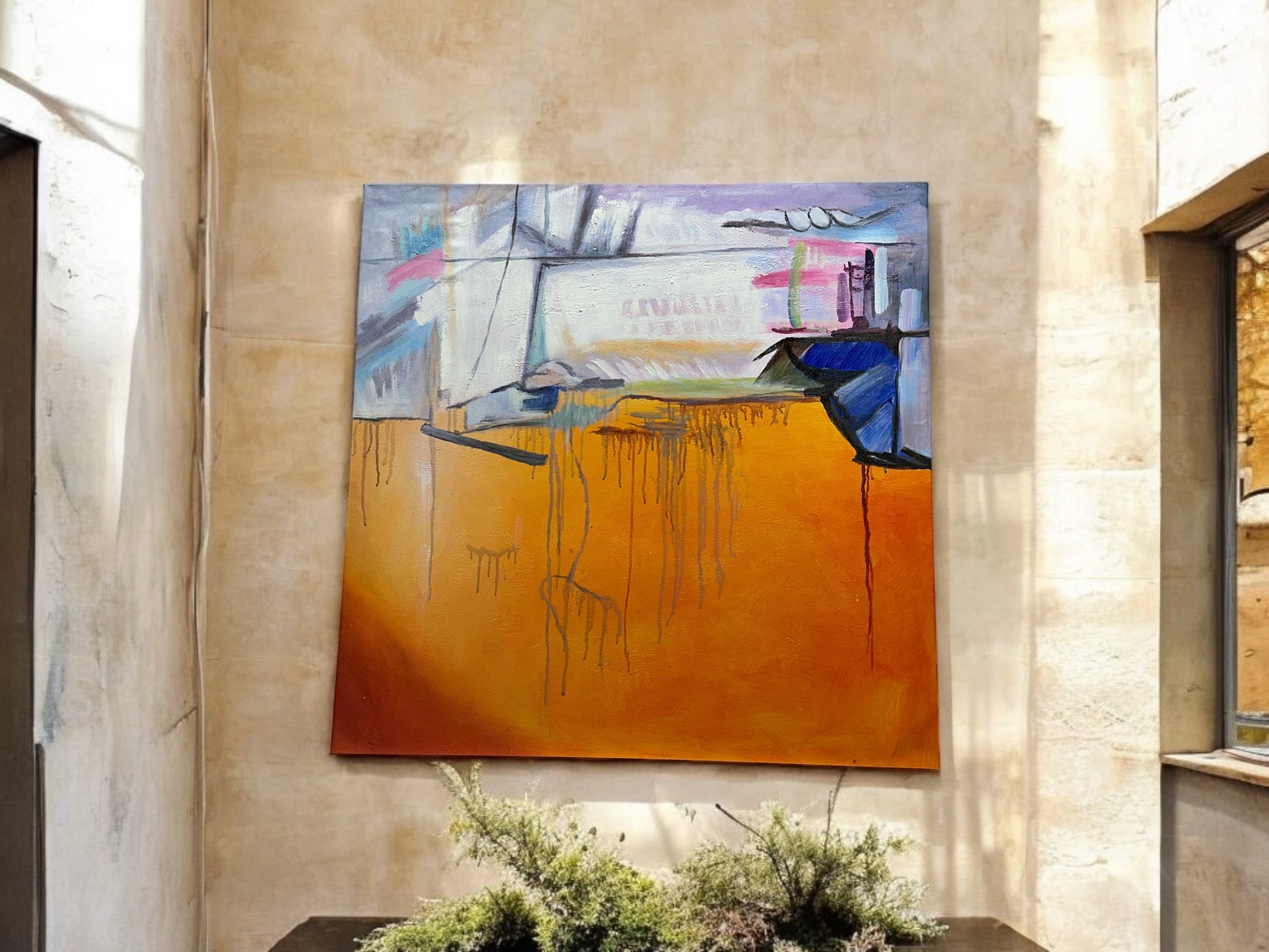 Experience the breathtaking beauty of #1286 from the Spectral Cascade collection. This abstract oil painting on canvas measures 36 x 36 inches, making it a striking addition to any space. Enhance your decor with this unique piece that blends vibrant colors and bold patterns for a truly mesmerizing display.