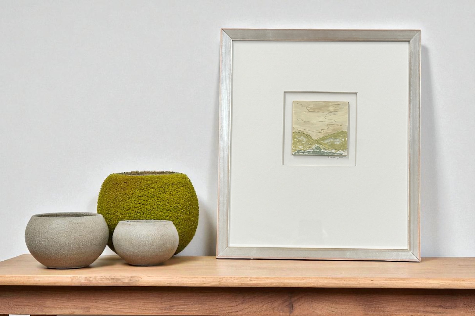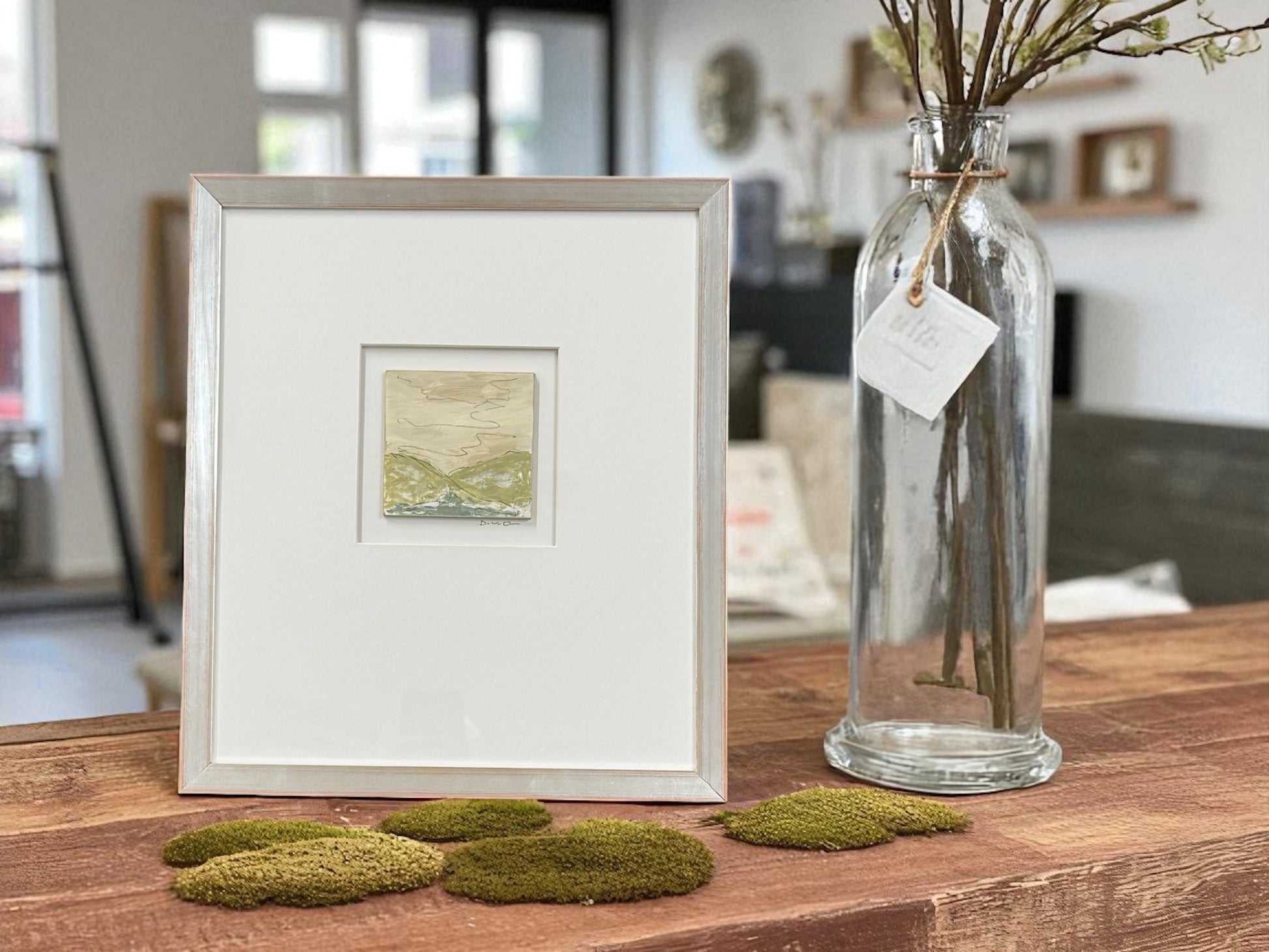 IExperience the beauty of Where Sky Meets Water with this stunning piece of art. With its acrylic on panel medium and custom silver and white wood frame, this artwork enhances any space with its elegant 13x15'' display. Add a touch of sophistication to your home or office.