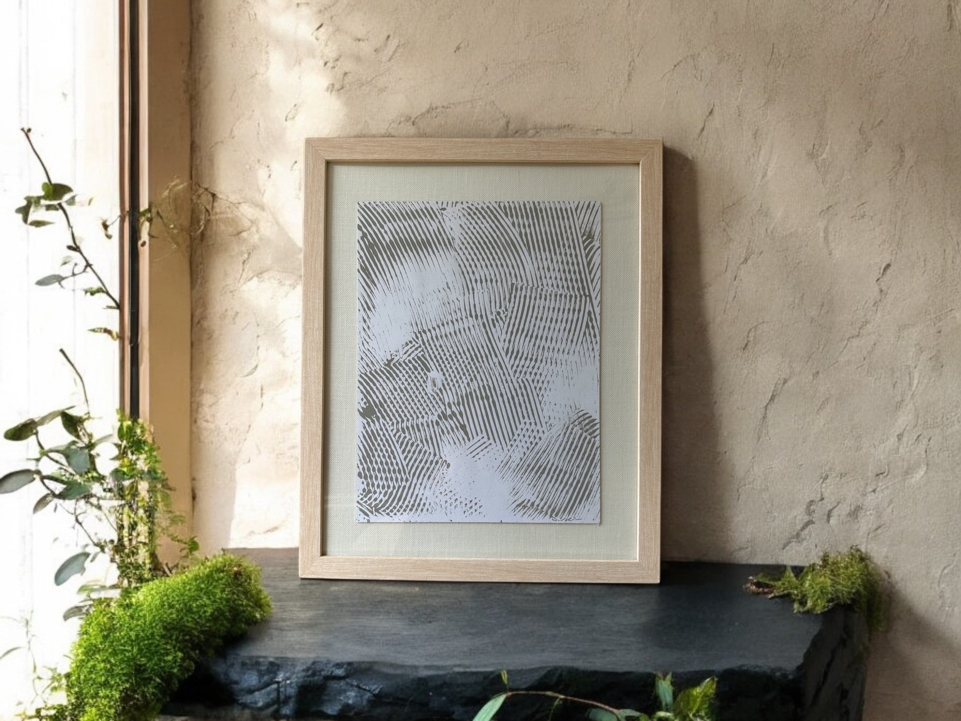 Indulge in the elegance of Woven Whispers DVO #1180. This art piece features exquisite acrylic on paper, custom mounted in a luxurious wood frame measuring 13 x 16 inches. Its delicate and intricate design is a true testament to the artistry of this exclusive collection. Elevate your space with the unique and timeless style of Woven Whispers.